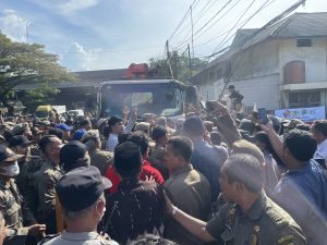 Ia juga mengaku nyaris terjepit kendaraan saat situasi ricuh. “Mobil masuk, dorong. Kalau saya sampai terjepit, siapa yang tanggung jawab?” ujarnya.