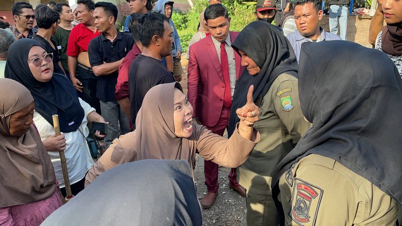 Dorong-dorongan tak terhindarkan. Sejumlah warga menghadang alat dan personel di lapangan. Situasi cepat memanas. Teriakan, tangisan, hingga benturan fisik terjadi di tengah upaya penutupan akses tersebut.