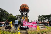 Di bawah terik matahari dan hiruk pikuk kendaraan yang lalu lalang, sekelompok aktivis lingkungan dan masyarakat sipil berdiri tegak di depan Kantor Dinas Penanaman…
